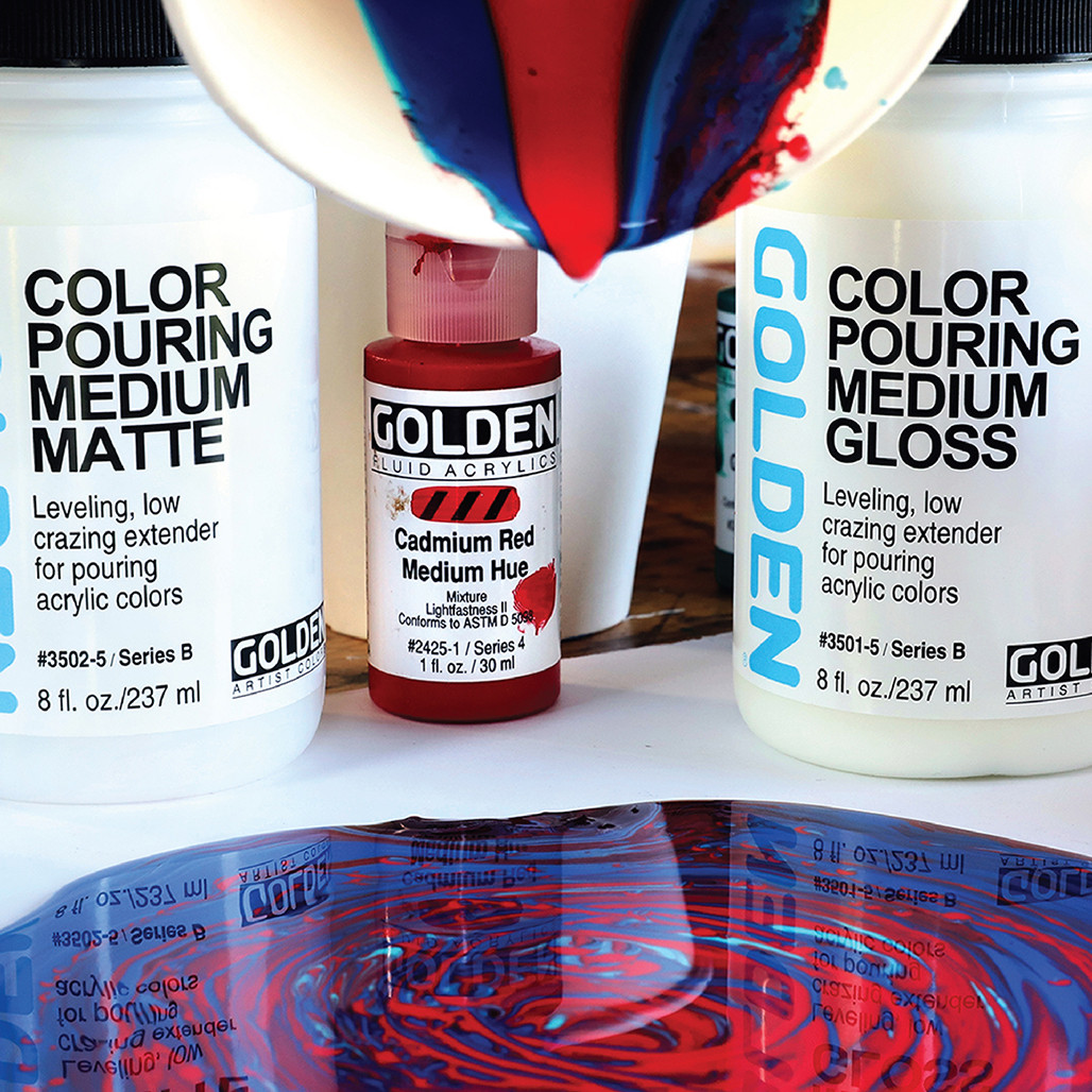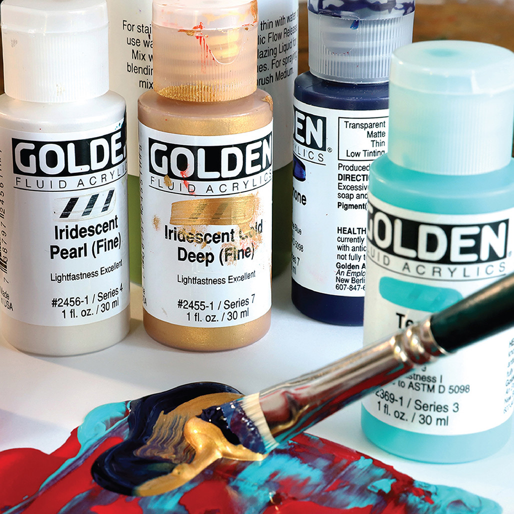 Golden Fluid Acrylics are great for brushing, pouring, spraying, staining, and fabric application. They can be mixed with other Golden acrylic paints.