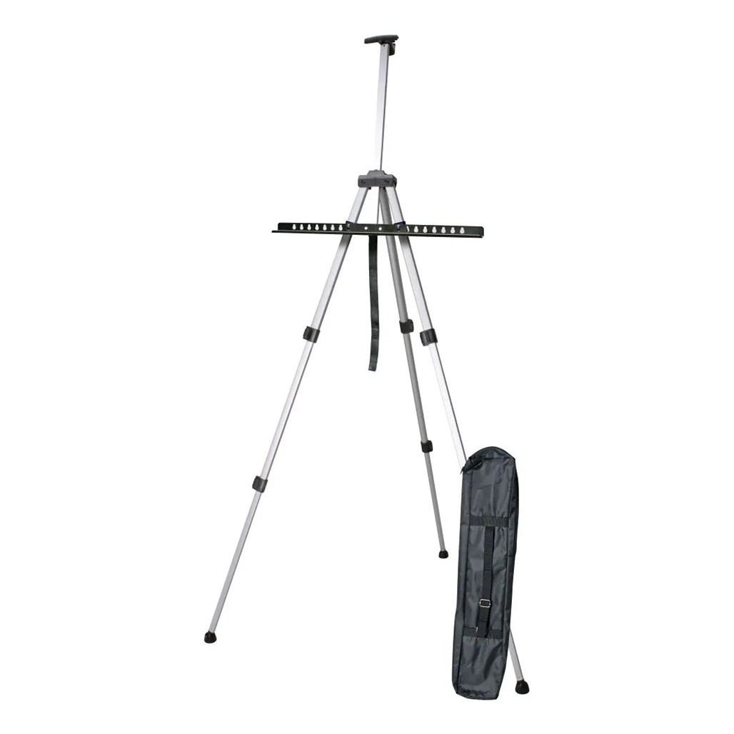 It is constructed from lightweight aluminium and features tripod, telescopic legs, allowing adjustments for finding a comfortable painting height and ensuring stability on uneven surfaces. It also includes a strap to keep it securely folded for transport.