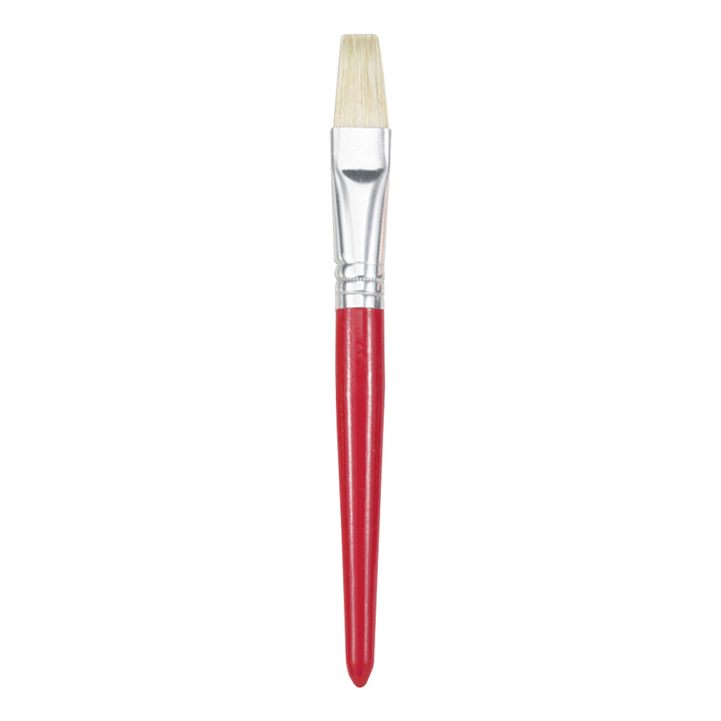 A single, inexpensive, natural bristle brush with a large handle that makes it easy for children to hold. Great for use with acrylic, oil, and tempera paint. These brushes feature firm bristles and are not suitable for watercolors.